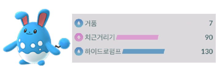 이번 핼러윈에서는 악 타입도 자주 보이기에 얘를 빼고 누구 넣지? 마릴리만 한 게 있을까? 하는 생각도 들게 한다. A텅구리와의 서로 보완은 개인적으로 좋다고 생각한다.(블래키, 곤율거니, 버랜지나 등 처리) 냉동빔이냐 하이드로펌프냐 계속 고민 중인데 아직까지는 냉동빔보다는 펌프의 위력 맛을 못 벗어나는 중